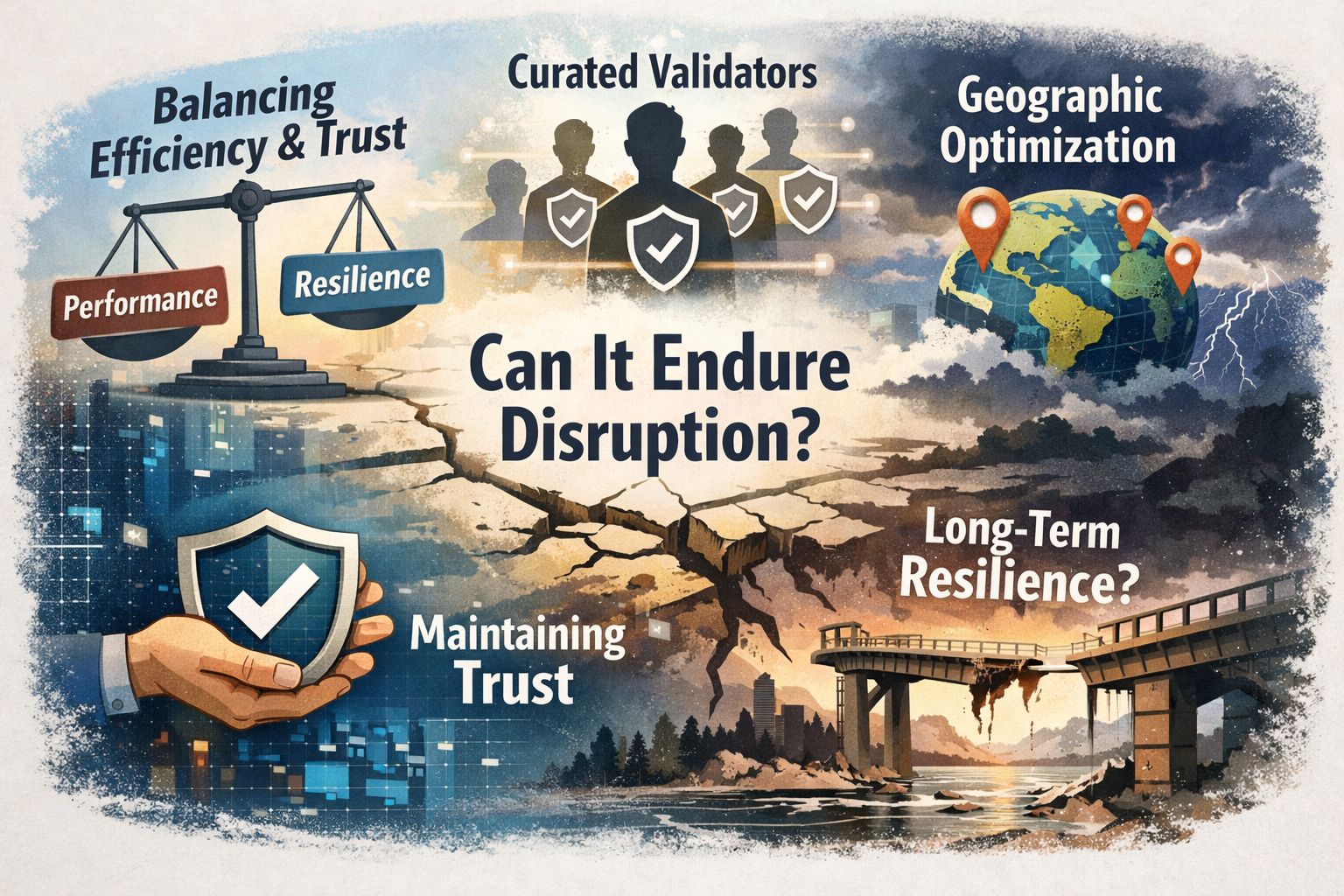 At the same time, there are unanswered questions that remain difficult to ignore. The long-term resilience of any specialized infrastructure depends not only on performance but on its ability to maintain trust under unpredictable conditions. Fogo’s design choices, including curated validators and geographic optimization, introduce efficiency but also raise questions about balance. Every system that prioritizes precision must eventually demonstrate that it can also endure disruption. This is not a flaw unique to Fogo, but it is a reality that every emerging infrastructure must confront..