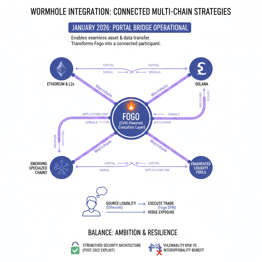 Yet no blockchain, regardless of its execution model, can thrive in isolation. Liquidity in today’s crypto ecosystem is fragmented across multiple networks, including Ethereum, Solana, various Layer-2 solutions, and emerging specialized chains. Traders do not operate with tribal loyalty to a single ecosystem; they pursue efficiency wherever it exists. Fogo’s designers appear to understand this reality, which is why cross-chain connectivity forms a central pillar of its vision. Through integration with Wormhole, Fogo becomes part of a broader interoperable fabric rather than a siloed experiment.