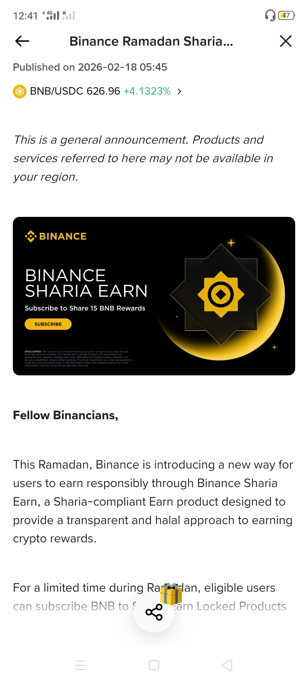#Binance has launched a special Ramadan Sharia Earn 2026 event, giving users a chance to share 15 BNB by simply subscribing to eligible Sharia-compliant Earn products.