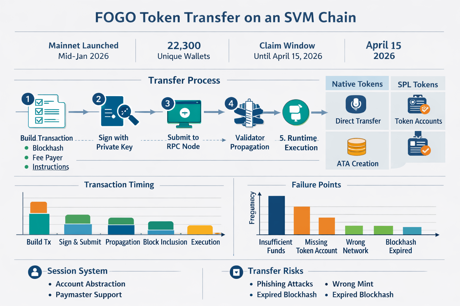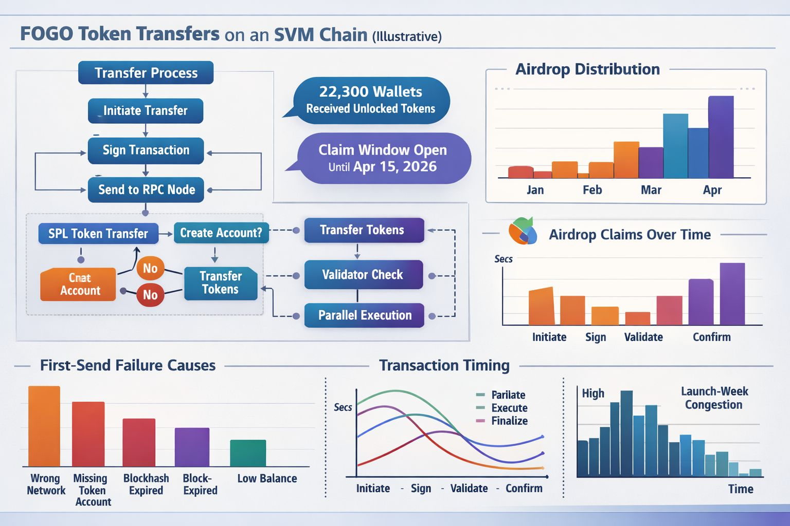 FOGO transfers are suddenly everywhere because Fogo’s mainnet and token distribution arrived in mid-January 2026, turning a testnet curiosity into something people had to use. Fogo’s own airdrop post says roughly 22,300 unique wallets received fully unlocked tokens, and the claim window stays open until April 15, 2026. That one detail alone explains the current flood of “first send” questions.