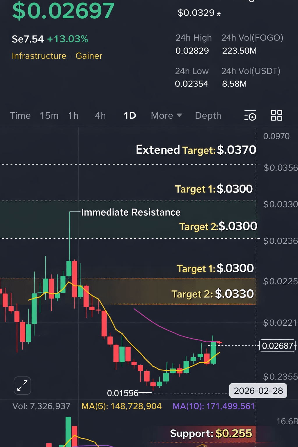 $FOGO /USDT has surged to $0.02697, gaining over 13% and confirming a strong bullish reversal from the $0.01996 low.