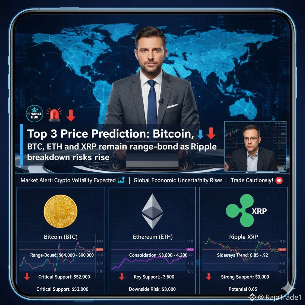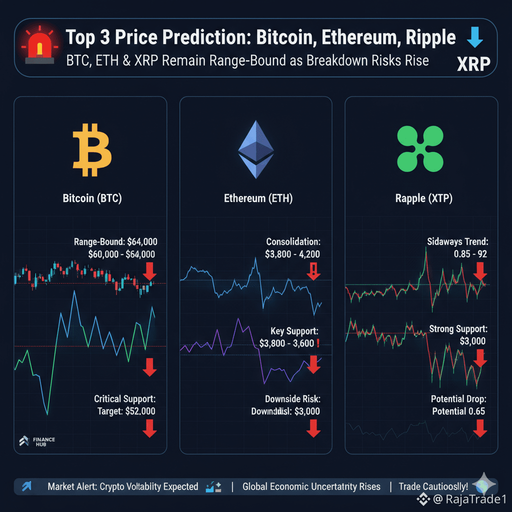 BTC, ETH, and XRP Remain Range-Bound as Breakdown Risks Rise đ