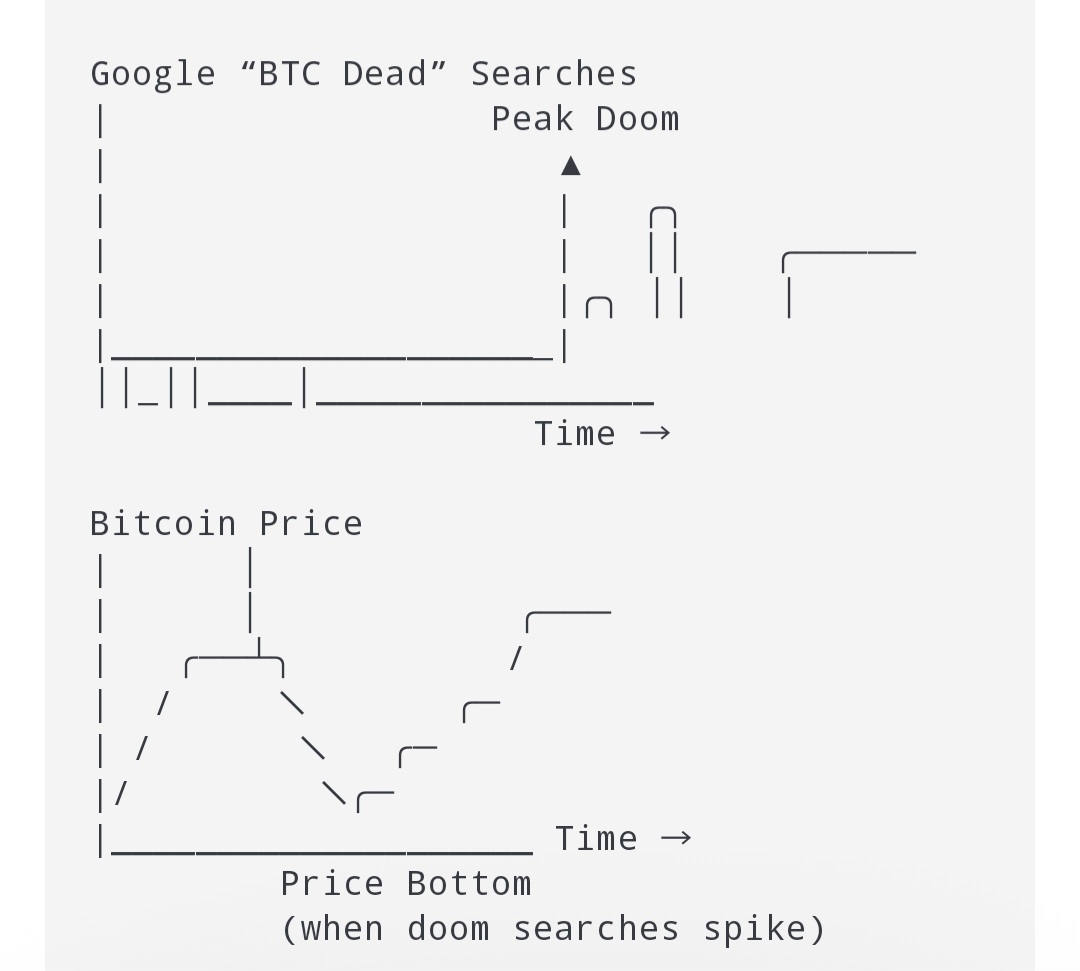 When “Bitcoin is dead” searches spike, it often aligns with fear extremes — not actual market tops.