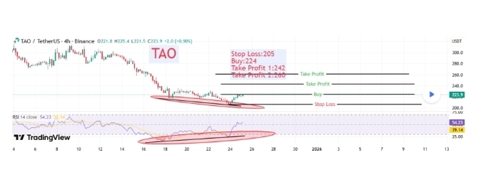 But on the downside, risks are still present. If $TAO cannot hold above the $214 support level, the correction may continue, with $167.43 being a strong support level to watch out for in case of a strong decline.