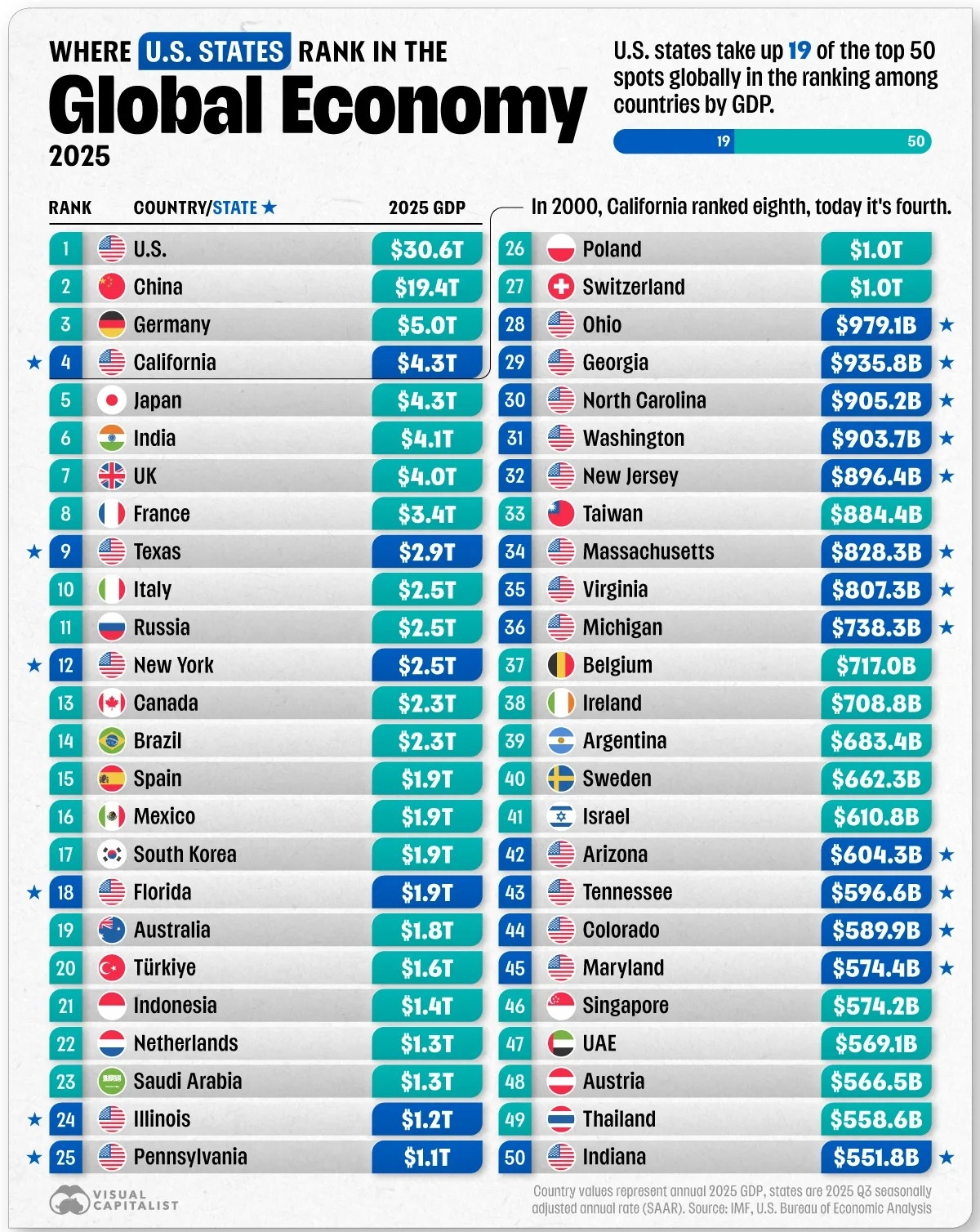 The global economic landscape is shifting, and the latest data reveals a staggering reality: U.S. states aren't just parts of a country; they are individual economic powerhouses. 🌎🇺🇸