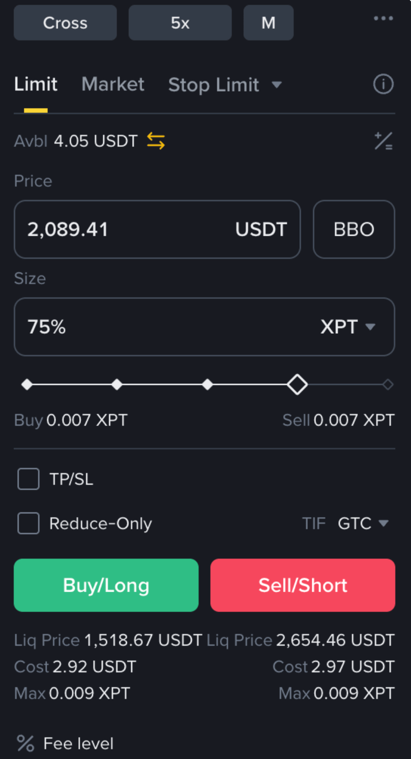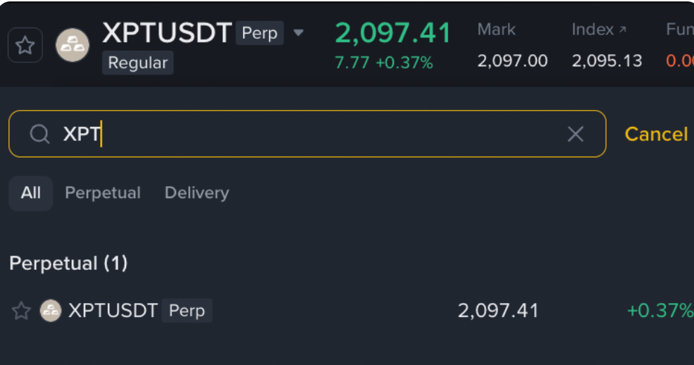 Search XPTUSDT for Platinum