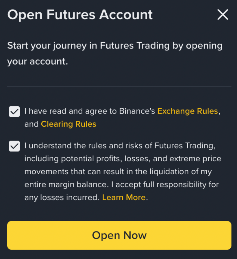 If this is your first time using Binance Futures, you must: