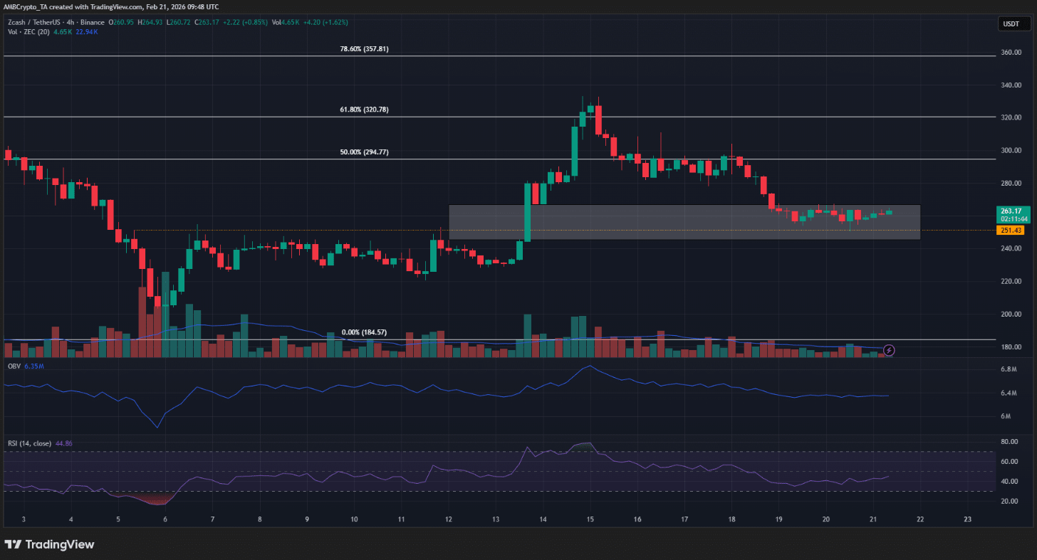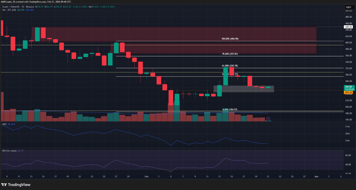 Ở góc nhìn dài hạn, sự gia tăng của nguồn cung được bảo vệ (shielded supply) cùng số lượng giao dịch ngày càng mở rộng được xem là tín hiệu tích cực, góp phần củng cố câu chuyện cốt lõi về quyền riêng tư của mạng lưới. Trong ngắn hạn, phản ứng giá tích cực quanh vùng hỗ trợ dài hạn 187 USD đang mang lại hy vọng cho phe bò, cho thấy lực cầu vẫn hiện diện tại các mốc quan trọng.