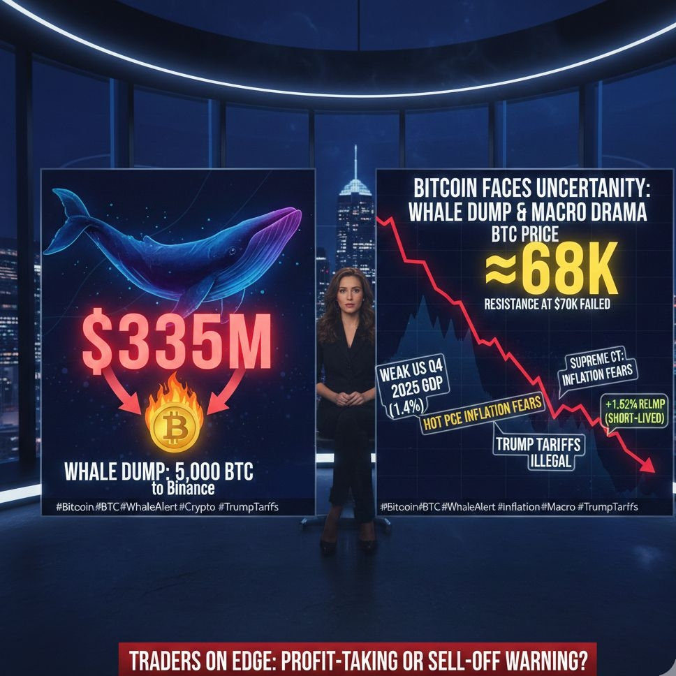 Timing is everything in crypto! Macro shocks are hitting hard, and a massive $335M Bitcoin whale transfer (5,000 BTC to Binance, linked to OG holder Garrett Jin) just minutes before weak US Q4 2025 GDP data (only 1.4% growth â slowest since early 2025) sent chills through the market. đŹ