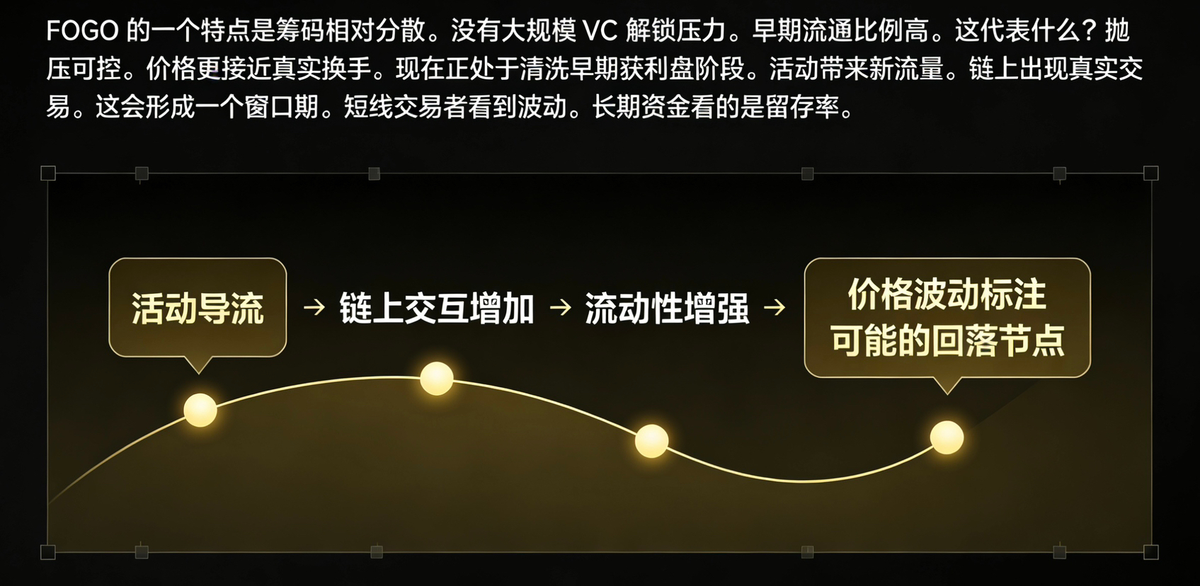 FOGO 的一个特点是筹码相对分散,没有大规模 VC 解锁压力。早期流通比例高。