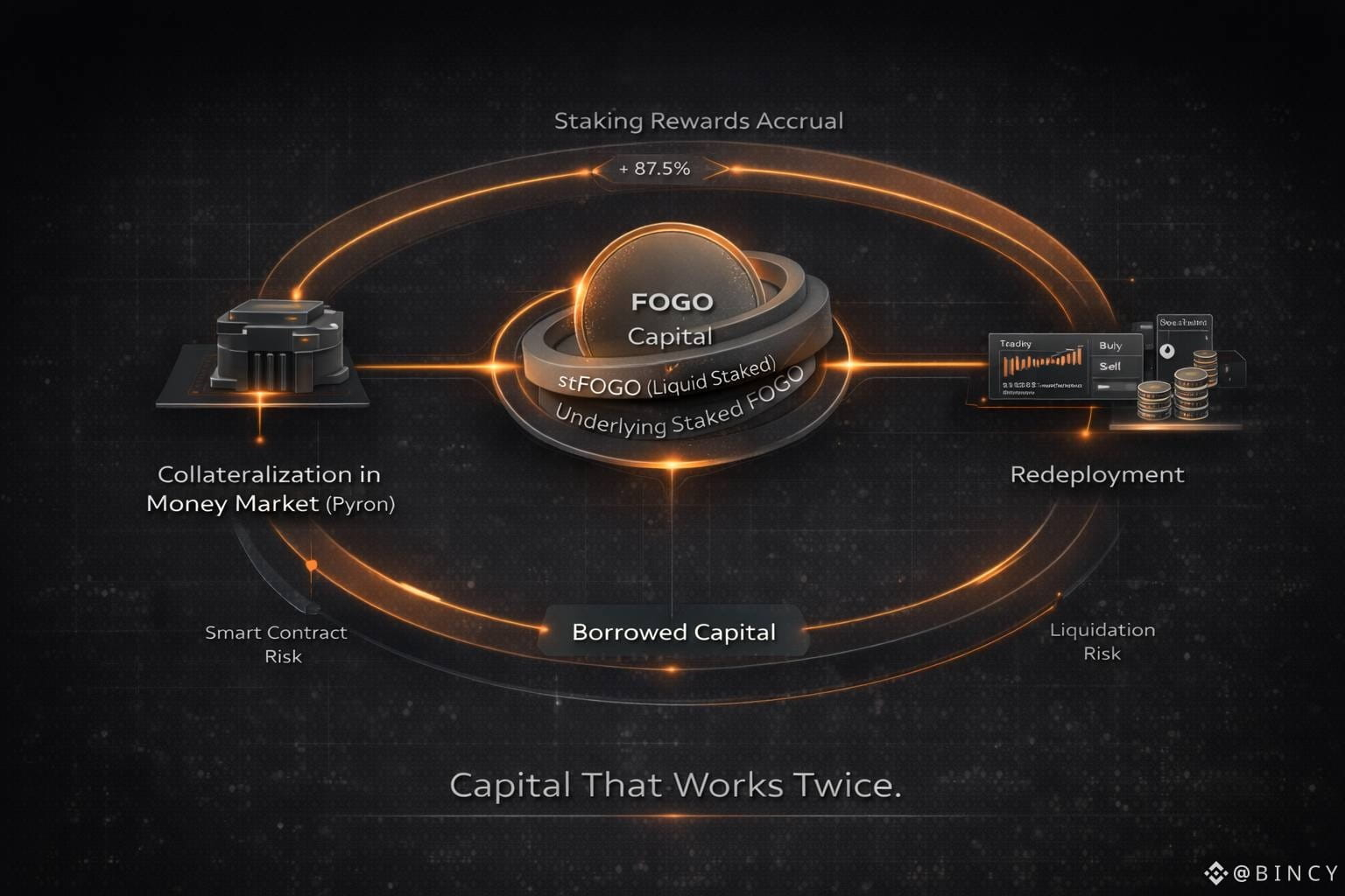 After stFOGO can be collateralized it ceases to be yield only. It is transformed into yield plus optionality. There the whole risk / probability profile modifies. As soon as a user is able to lend stFOGO, borrow stFOGO, or recycle positions, the chain should begin to seem more of a financial venue rather than a staking playground.