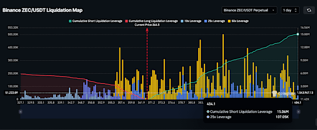 On Binance’s ZEC perpetual pair, over $15 million sits in short liquidation leverage, while long liquidation leverage is closer to $6 million. Shorts outweigh longs by more than 2.5x, indicating traders are positioned for downside continuation rather than neutral volatility. This kind of imbalance usually appears when markets expect support to fail rather than hold.