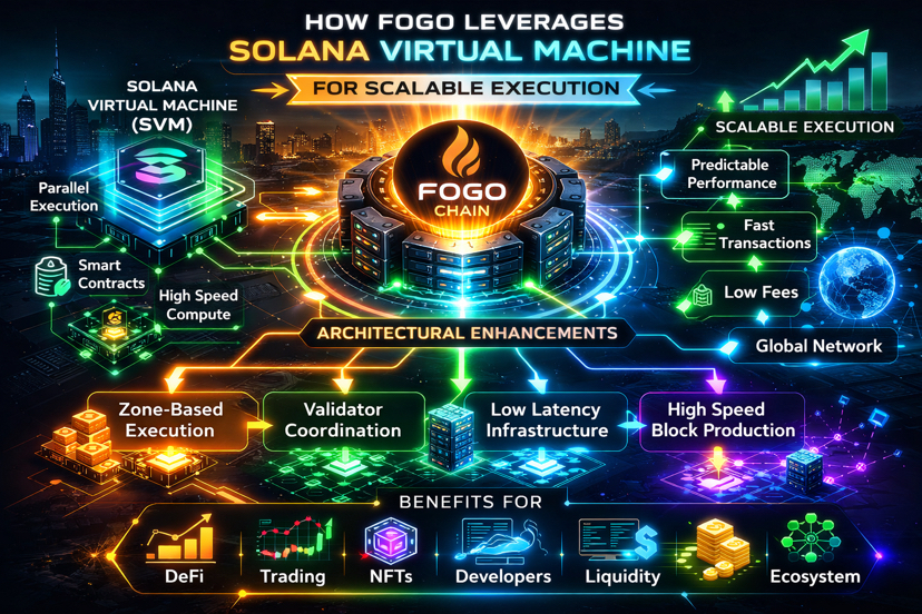 These architectural choices create a layered effect. The Solana Virtual Machine offers the raw execution engine, while Fogo adds structural discipline around it. The virtual machine processes transactions efficiently, the zone based model prevents congestion from spreading, the validator alignment stabilizes timing, and the infrastructure placement minimizes latency. Together these layers create a system where performance is not treated as an occasional feature but as a continuous property of the network. This is what allows the chain to scale execution reliably instead of only in controlled test conditions.