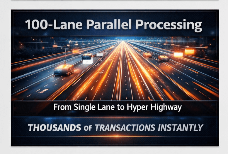 Most Ethereum L2s process transactions sequentially — one after another. Fogo’s SVM architecture can process thousands of transactions simultaneously in parallel lanes. It’s like replacing a single-lane road with a 100-lane highway.