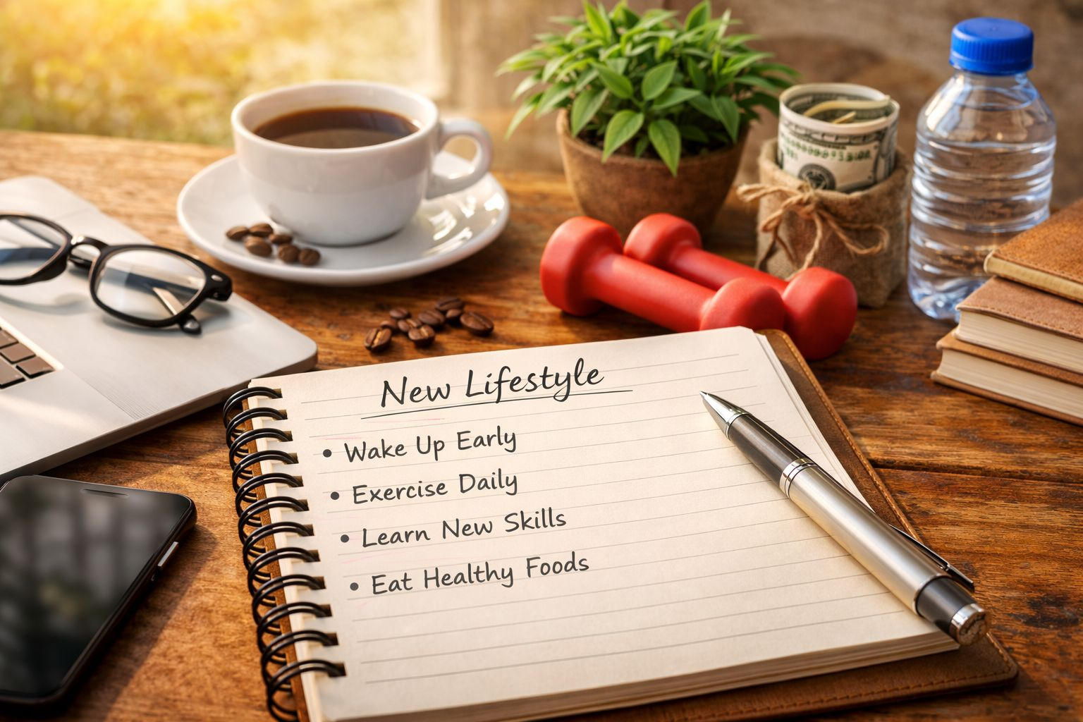 Use keywords like daily life diary, personal growth journal, productive routine, self-improvement habits.