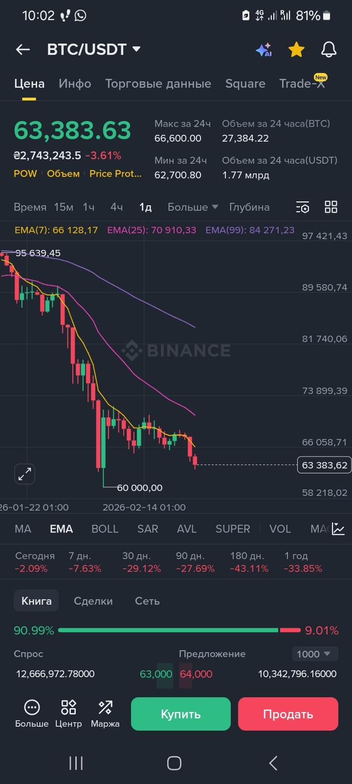 Биткоин у отметки $63,000: Дно пройдено или летим ниже? 📉🤔
