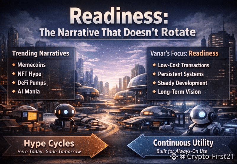 That said, readiness is one of the few narratives that doesn’t rotate out every quarter. When the market moves from speculation to utility, from one-off transactions to continuous systems, chains built for persistence suddenly look obvious in hindsight. Vanar is positioning itself for that shift, not by shouting, but by building for it.