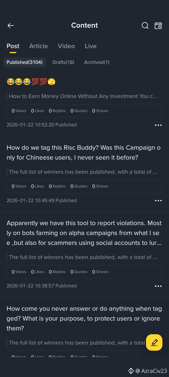 So people writing for creator pad can get disqualified for low views !!!