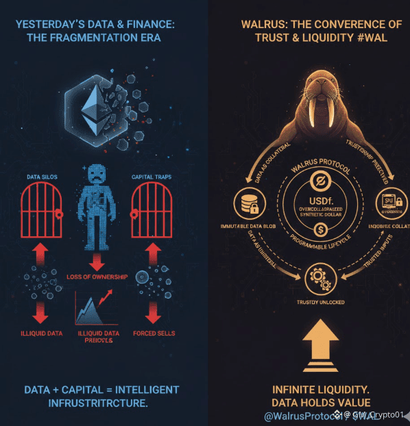 Every major financial shift begins somewhere unglamorous. Not on trading screens or price charts, but in the invisible plumbing that decides what can be trusted, preserved, and reused. The internet itself did not transform commerce because of websites; it did so because data became persistent, addressable, and cheap to move. Walrus starts from a similar premise, but applies it to a world where data and capital are no longer separate concepts.
