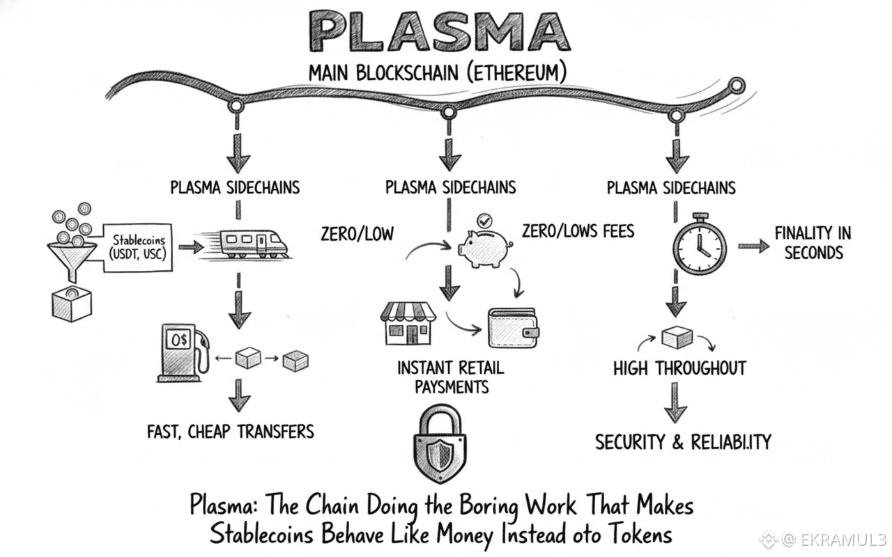 Plasma’s thesis is painfully simple: if stablecoins are going to function as digital dollars, the chain carrying them must behave like a payment rail, not a general-purpose compute environment.