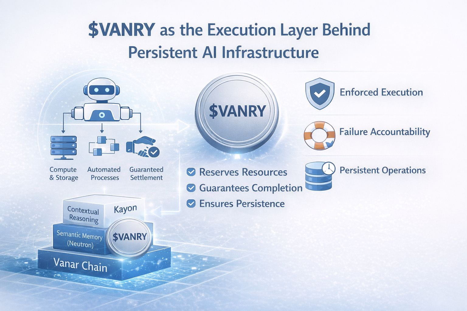 @Vanar does things differently. The execution is economically mandated in advance before it can commence. $VANRY has to allocate the resources required to accomplish a task compute, storage, coordination, and settlement capacity, so that when execution commences, the network is bound to complete it. This transforms execution to a probabilistic event to a certainty.