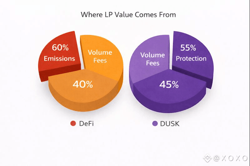 DUSK does not promise liquidity providers outsized returns. It offers something more valuable: an environment where providing liquidity makes economic sense.