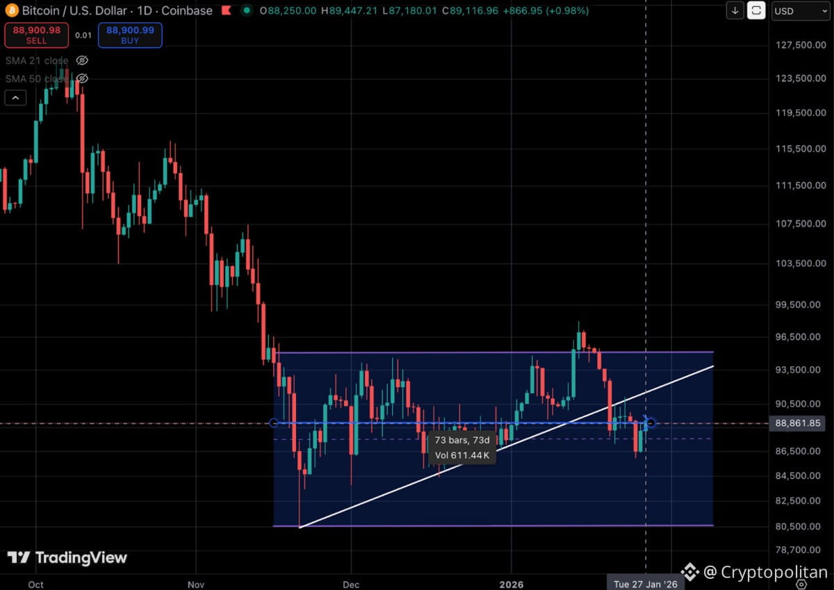 Bitcoin has been compressed within a clear range between $80.5K and $95K for 73 days now. The ranging market has also been characterized by unusually low volatility, especially when you compare to traditionally less volatile assets like gold and silver.