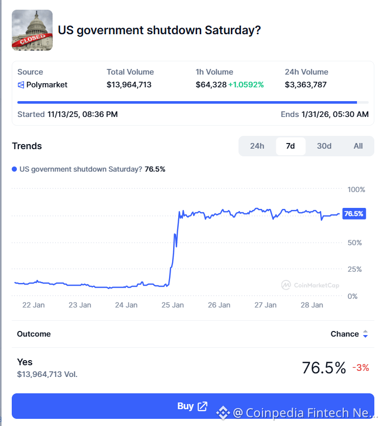 The post U.S. Government Shutdown 2026 Odds Spike to 76%, Crypto at Risk appeared first on Coinpedia Fintech News