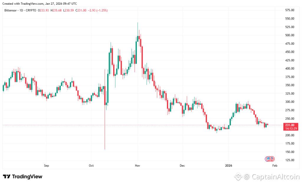 Bittensor is a top AI crypto following its first halving, which reduced daily TAO issuance from 7,200 to 3,600 tokens. TAO currently trades at $231, with projections suggesting a possible rise to $563 by late 2026.