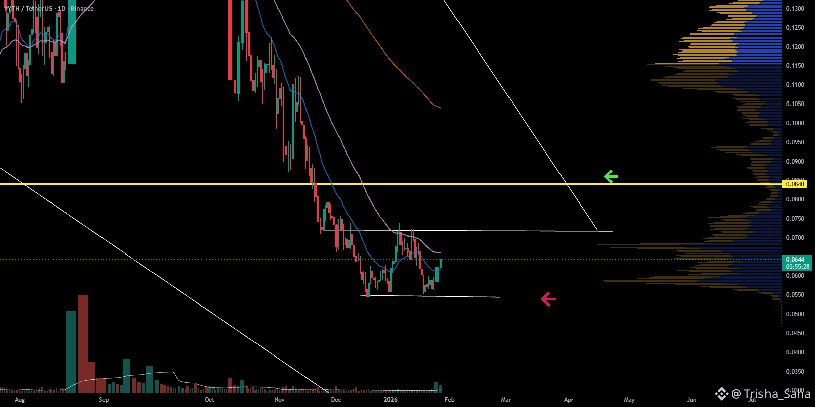PYTH remains within a broader downtrend, but short-term structure is beginning to improve.