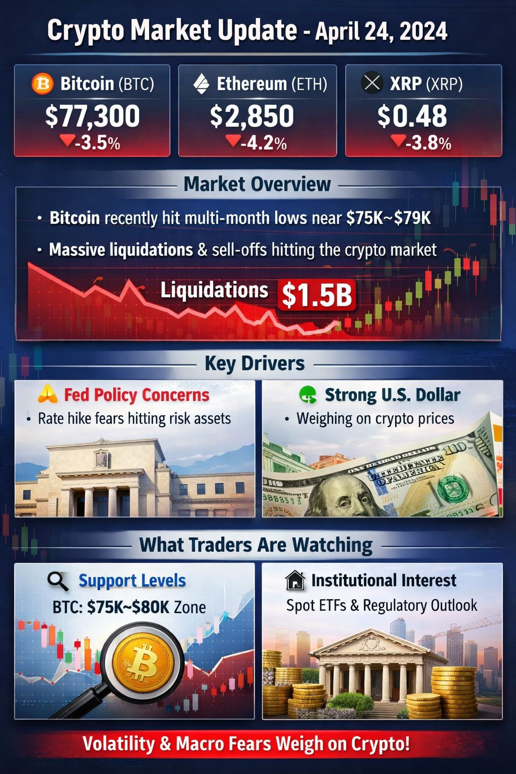 Bitcoin recently hit multi-month lows near ~$75,000–$79,000 before some bounce, showing continued downward pressure and risk-off sentiment in markets. �