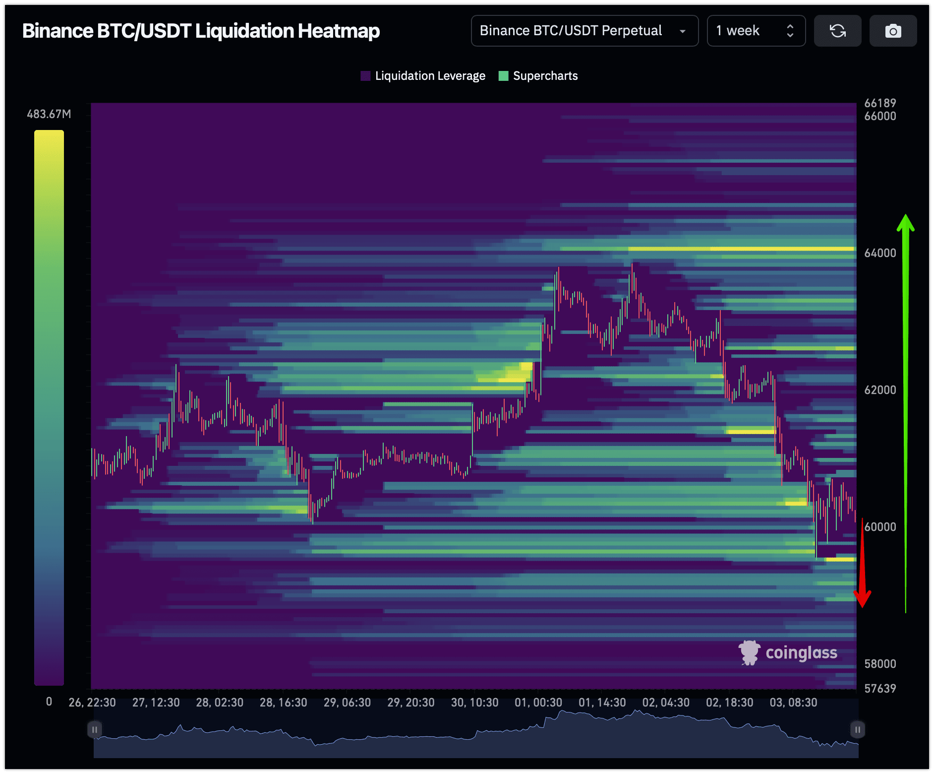 • Mức quan trọng: Khối lượng thanh lý ở mức 60.000 USD có thể gây ra biến động giá mạnh, vì vậy mức này rất quan trọng để BTC tiến lên phía trước