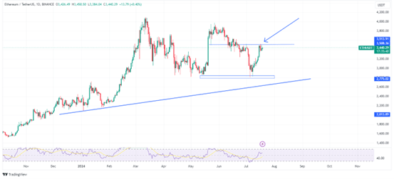 Ethereum cũng đang cố gắng đột phá trên 3.500 USD, trong khi DogWifHat đối mặt với ngưỡng kháng cự ở mức 2,52 USD.