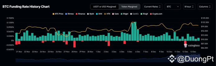 Dù BTC giảm 0,28% trong 24 giờ qua, tỷ lệ tài trợ dương ở mức 0,0100% và tỷ lệ hợp đồng dài/ngắn trung lập (1) phản ánh tâm lý tăng giá. Biến động hiện tại được coi là thoái lui nhỏ, với phe mua vẫn giữ lợi thế.