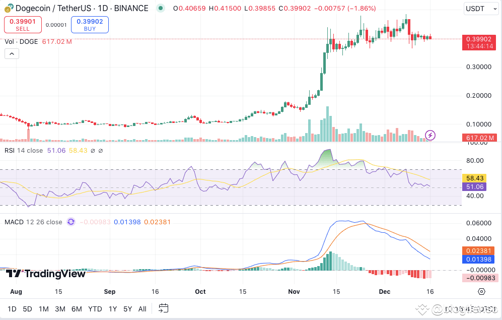 Nếu giá có thể vượt qua mức này, vùng kháng cự tiếp theo có thể sẽ ở mức khoảng 0,42 đến 0,45 đô la. Các mức này rất quan trọng để hiểu liệu DOGE có thể tiếp tục tăng hay sẽ phải đối mặt với sự điều chỉnh.