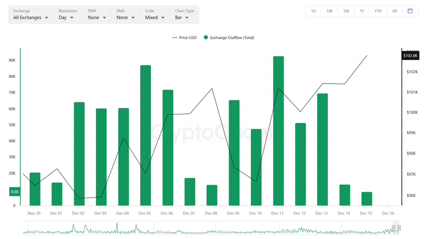 Nếu bạn kiểm tra biểu đồ CryptoQuant, rõ ràng là dòng chảy BTC từ các sàn giao dịch đang chậm lại.