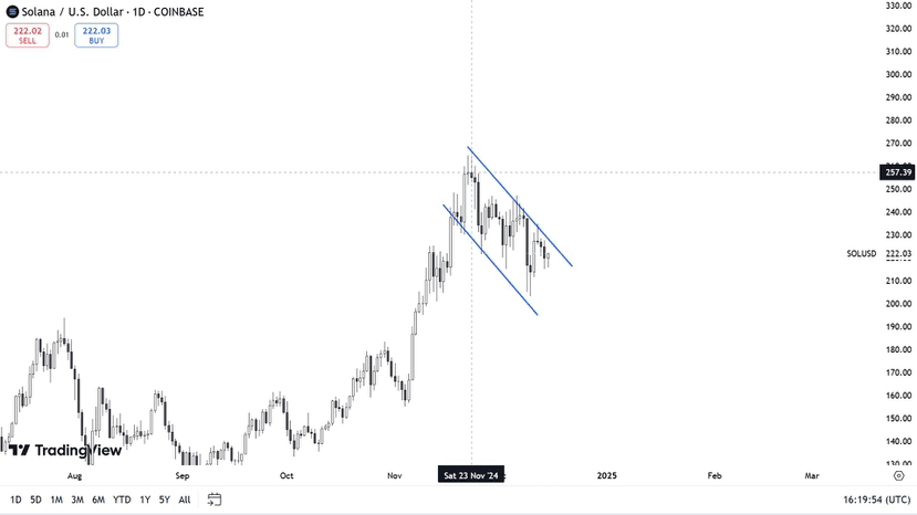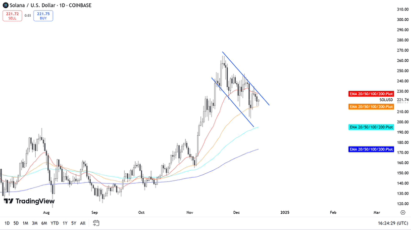 Trên biểu đồ hàng ngày, rõ ràng là Solana đã rơi vào xu hướng giảm kể từ ngày 23 tháng 11.