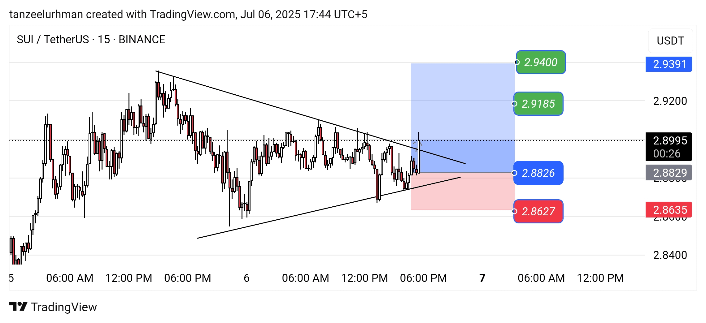$SUI đã di chuyển trong một mô hình tăng giá từ sáng và bây giờ thị trường đã bứt phá khỏi mô hình này. Nếu bạn muốn, bạn có thể vào một giao dịch dài ngay bây giờ.