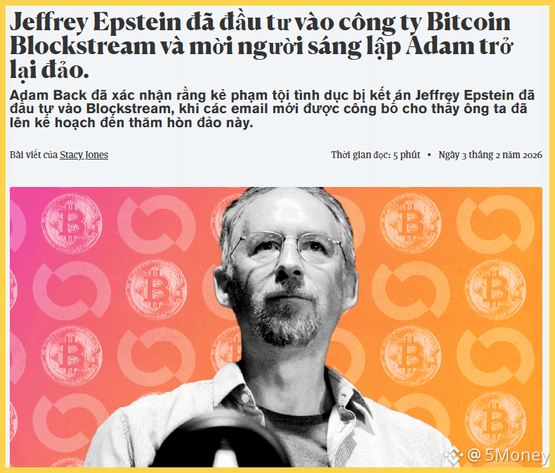 Cũng trong năm 2014, Epstein thông qua quỹ của MIT Media Lab đã rót 500.000 USD vào vòng gọi vốn 18 triệu USD của Blockstream, một trong những công ty hạ tầng quan trọng nhất của Bitcoin.