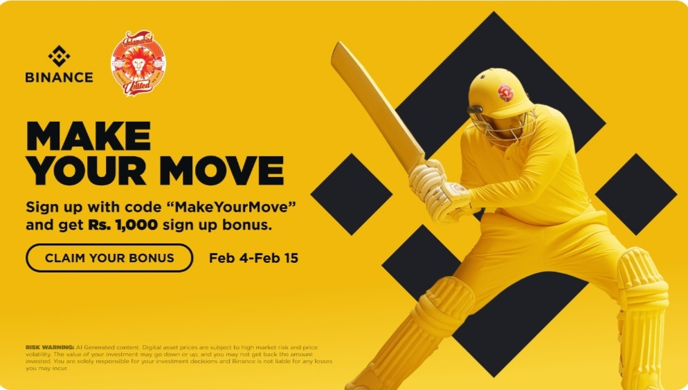 To celebrate the partnership renewal, Binance is offering new Pakistani users an exclusive welcome reward between February 4 and 15, 2026. New users who sign up through the Binance app using the referral code “MakeYourMove” and complete verification will receive PKR 1,000 to start exploring digital assets.