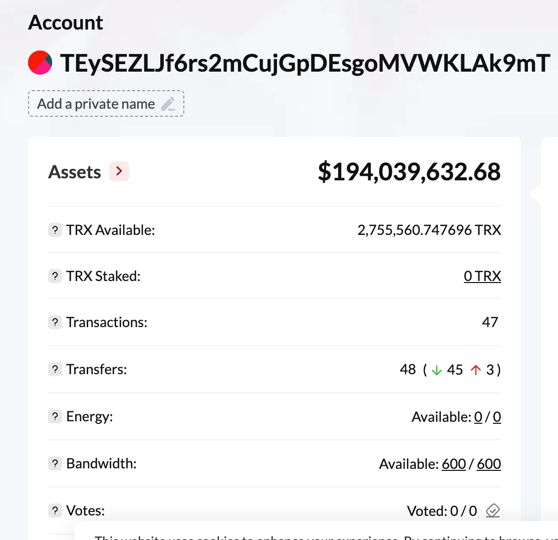 https://tronscan.org/#/address/TEySEZLJf6rs2mCujGpDEsgoMVWKLAk9mT