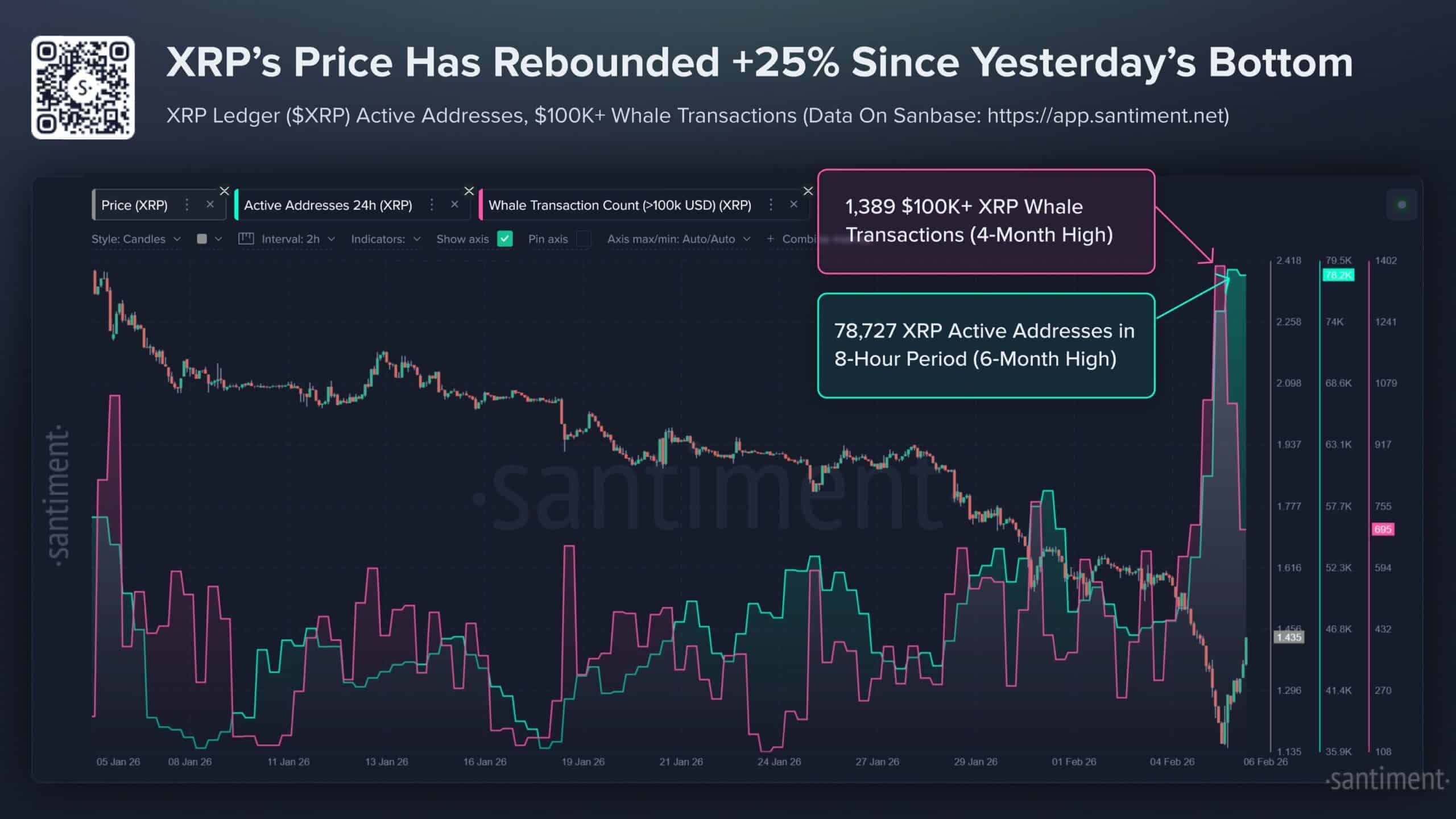 Dữ liệu On-chain xác nhận sự tích lũy chiến lược. 1,389 giao dịch >$100k được ghi nhận, cùng với đỉnh cao 6 tháng về số địa chỉ hoạt động (78,727).