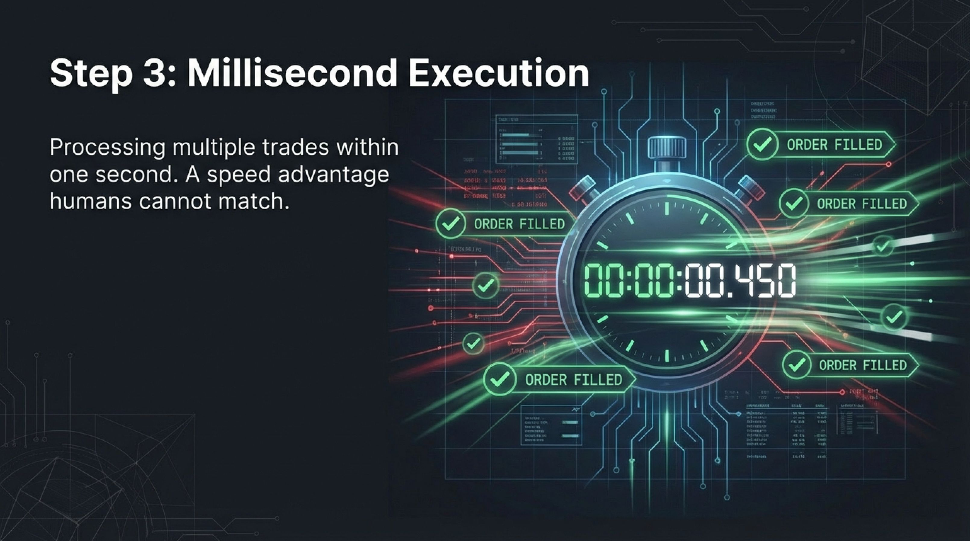 Vai trò của nhà giao dịch: người điều hành, không phải người thực hiện. Giám sát, điều chỉnh, quyết định khi nào dừng lại. Hệ thống xử lý tốc độ thực hiện quan trọng - xử lý nhiều giao dịch đồng thời, ngay cả trong một giây.
