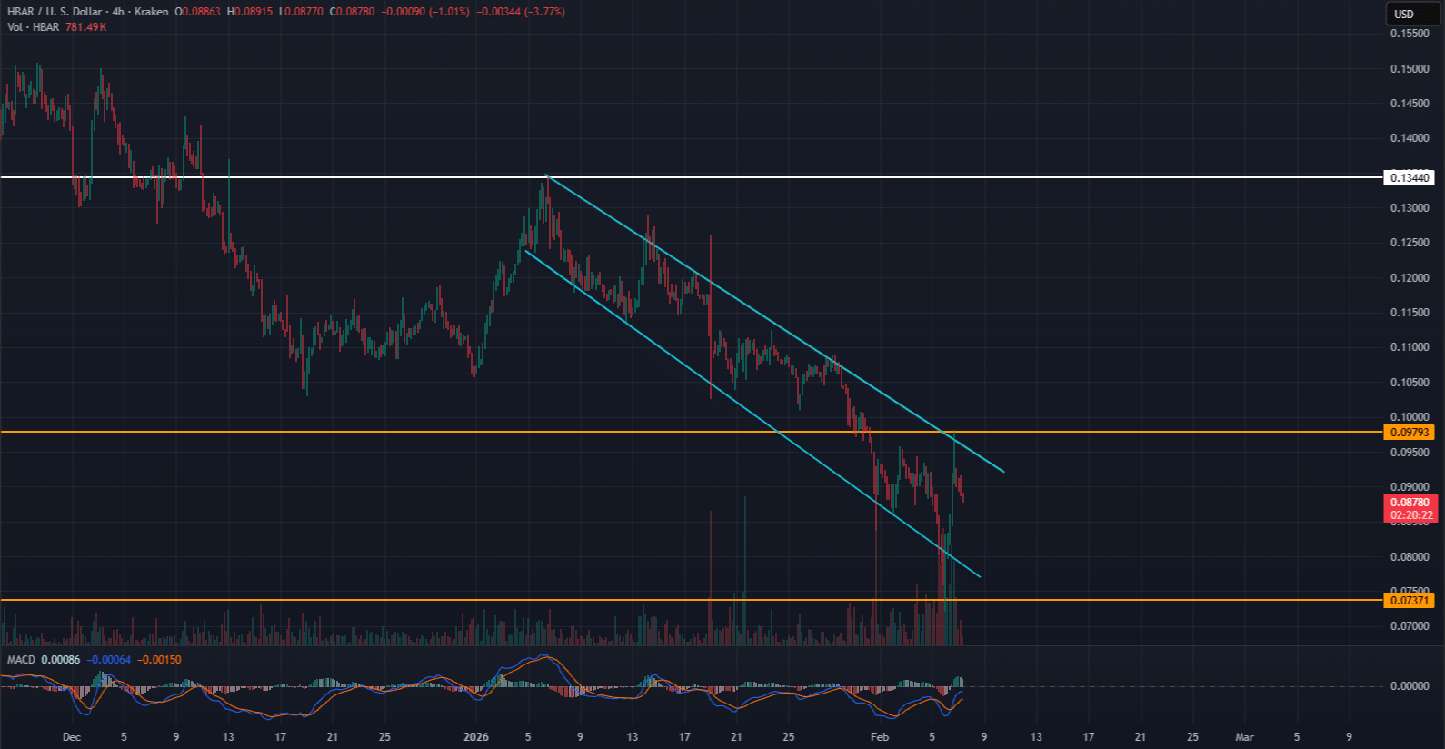 $HBAR đã thực hiện một cú hồi phục sắc bén, bật lên từ đáy đầu hàng tại $0.077 để ổn định quanh $0.090. Mặc dù cú nảy 20% rất hứa hẹn, thị trường đang chờ đợi một sự phá vỡ dứt khoát trên $0.100 để xác nhận sự đảo chiều xu hướng thực sự.