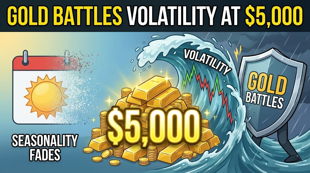 Sau khi không giữ được mức tâm lý quan trọng 5,000 USD, vàng đang phải đối mặt với sự biến động mạnh và buộc phải chọn một hướng đi mới khi các yếu tố hỗ trợ theo mùa dần phai nhạt.