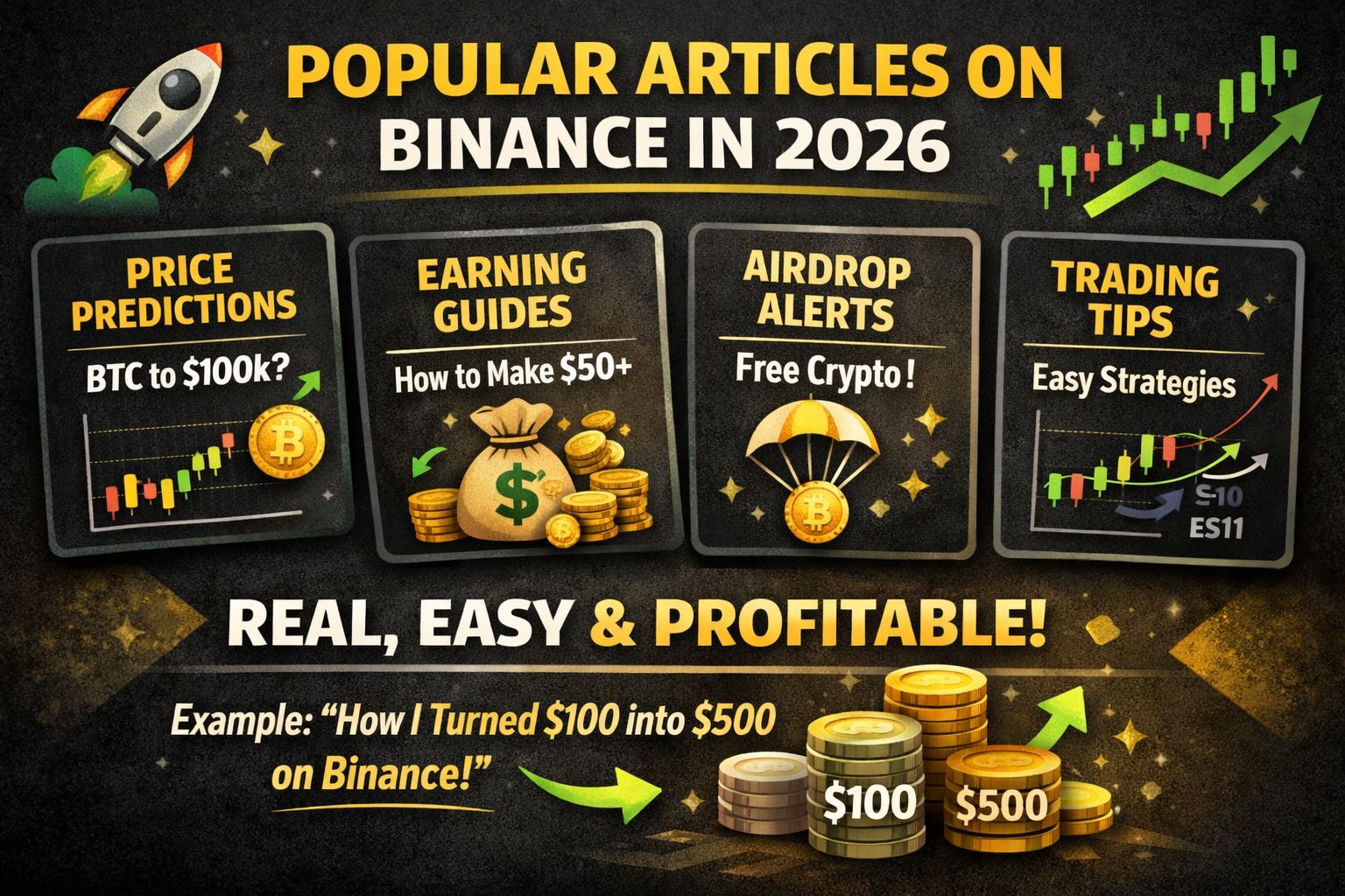 In 2026, the most popular type of article on Binance is one that focuses on earning opportunities, price predictions, and simple trading guides because readers are mainly interested in making profit and understanding market trends. Articles like “Top Altcoins That Could 10x This Year” or “How Beginners Can Earn from Binance with $50” usually attract more attention since they are practical and result-oriented. Content that explains new updates, airdrops, staking rewards, or market analysis with clear examples also performs very well because people want real, useful information—not just theory. If an article is easy to understand, includes current market insights, and gives realistic examples (like how someone can grow $100 through spot trading or staking), it has a much higher chance of becoming popular among Binance users.