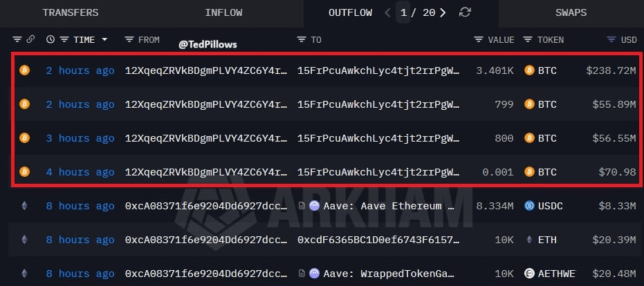 Để cắt lỗ, cá voi này đã nạp gấp hơn 5,000 BTC ($345 Triệu USD) lên Binance, với một lệnh nạp đơn lẻ trị giá tới 238.72 Triệu USD. Dòng tiền lớn chảy lên sàn báo hiệu áp lực bán tháo sắp ập đến.