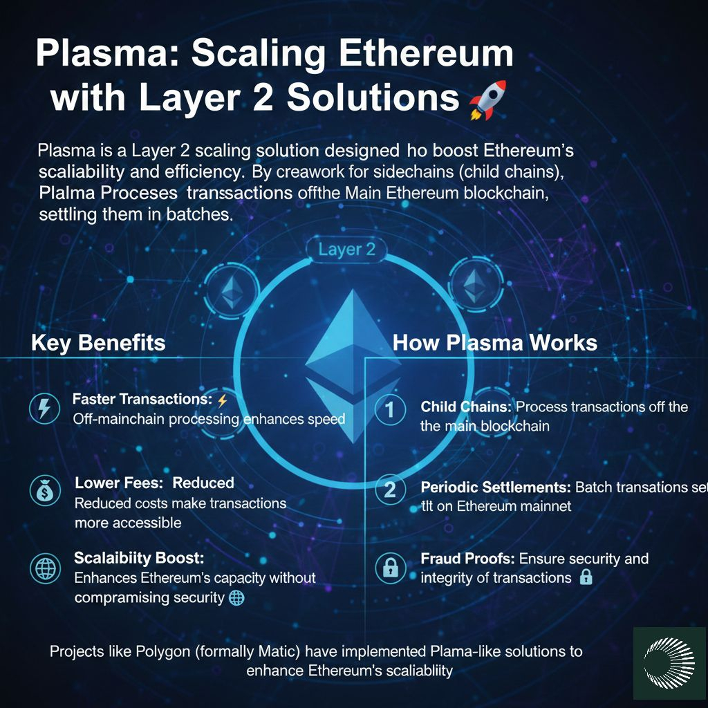 Plasma is a Layer 2 scaling solution designed to boost Ethereum's scalability and efficiency. By creating a framework for sidechains (child chains), Plasma processes transactions off the main Ethereum blockchain, settling them in batches.