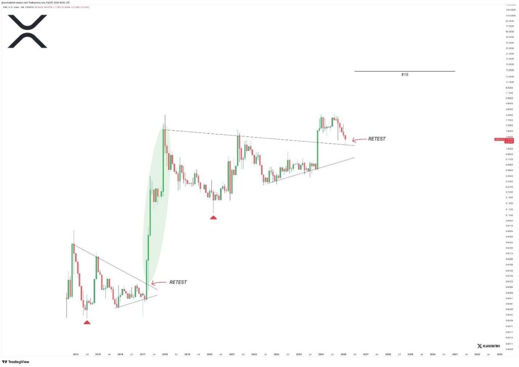 Trong khi đó, nhà phân tích Javon Marks đã nhấn mạnh sự phục hồi của XRP sau khi kiểm tra lại thành công mức kháng cự trước đó, một khu vực mà lịch sử thường dẫn đến những đợt tăng giá lớn. Theo Marks, các thiết lập tương tự trong quá khứ đã dẫn đến các đợt phá vỡ đáng kể hướng tới các mục tiêu di chuyển đã đo lường.