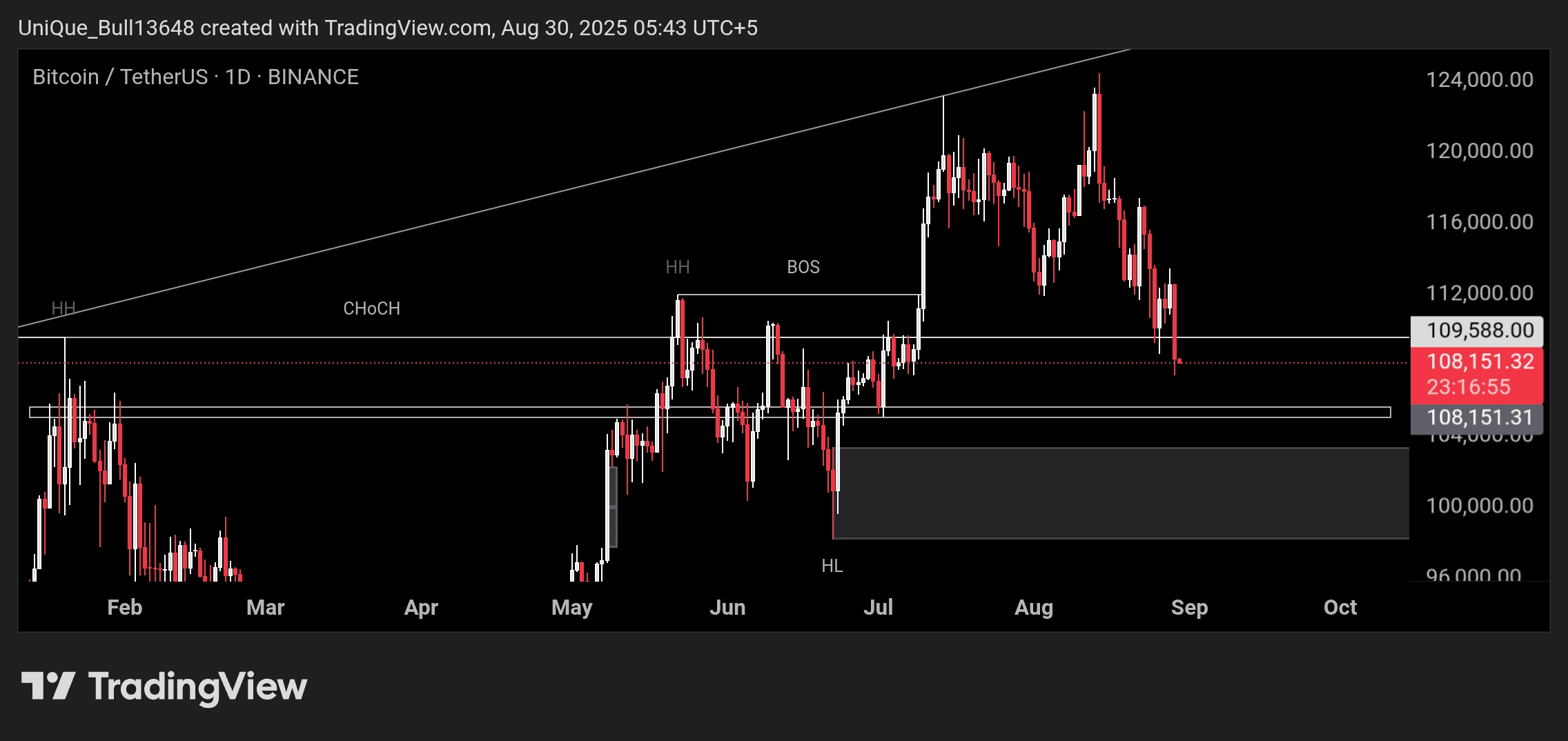 Bitcoin đã kết thúc ngày ở mức $108,377, cho thấy tín hiệu hơi tiêu cực.
